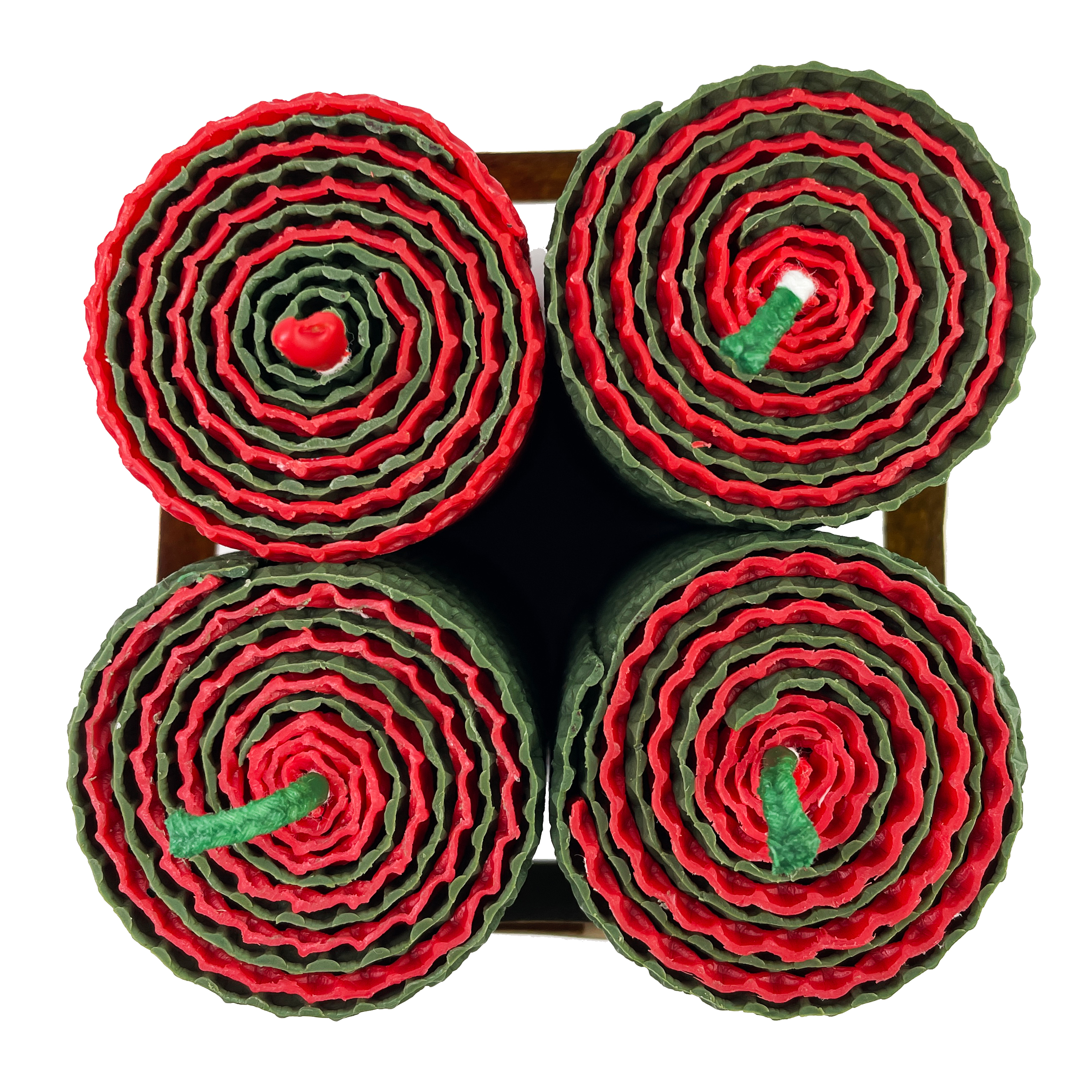 Culoare: spirală de verde cu roșu la exterior (3 lumânări) și spirală de roșu cu verde la exterior (1 lumânare).